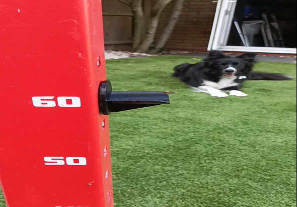 The Doggy Hoopers Thing is a fully customizable Hoopers Hoop, designed with the safety of your dog in mind. Each hoop can be vinyl wrapped to match you clubs colours, or simply your favourite colour. The standard hoop is fully compliant with UK Hoopers specifications. I also offer a compact version of the Doggy Hoopers Thing, ideal for garden training.