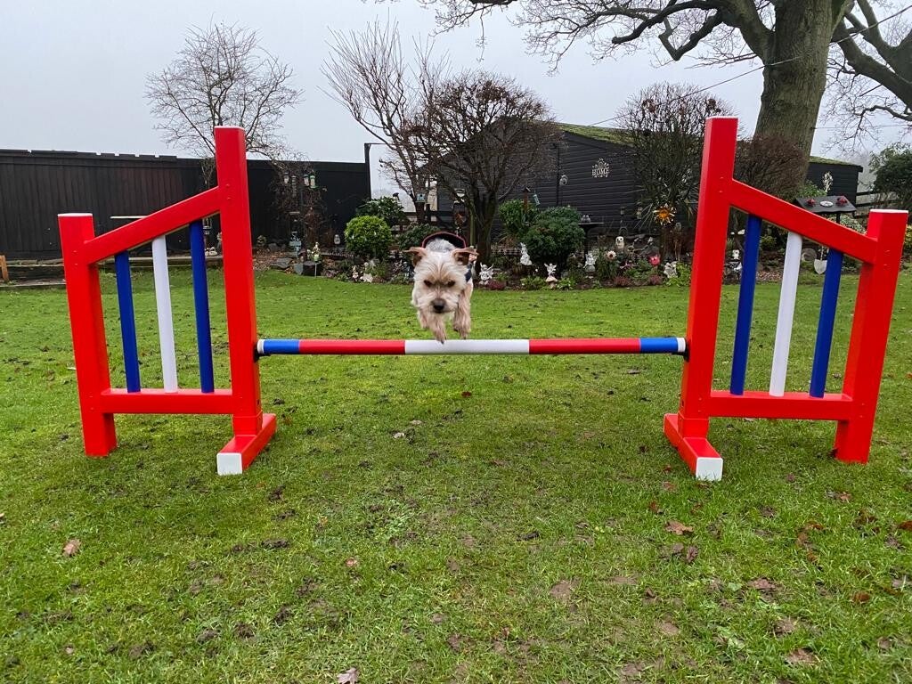 This Christmas I was asked to make two sets of custom red, white and blue KC jumps for some very special dogs and handlers. These were really fun to make, and even more fun to see the dogs doing what they do best. Enzo's mum assures me he is happy with his jumps although the Santa hat says otherwise, but look at the smile on Ted's face!!!!!