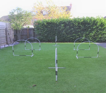 I currently have two versions of the "Doggy Hoopers Thing"; The Standard Hoopers; fully compliant with the Hoopers UK specification and the Compact Hoopers; ideal for garden training or where space is tight. Both are hand made, fully customizable and designed with the safety of your dog paramount.
